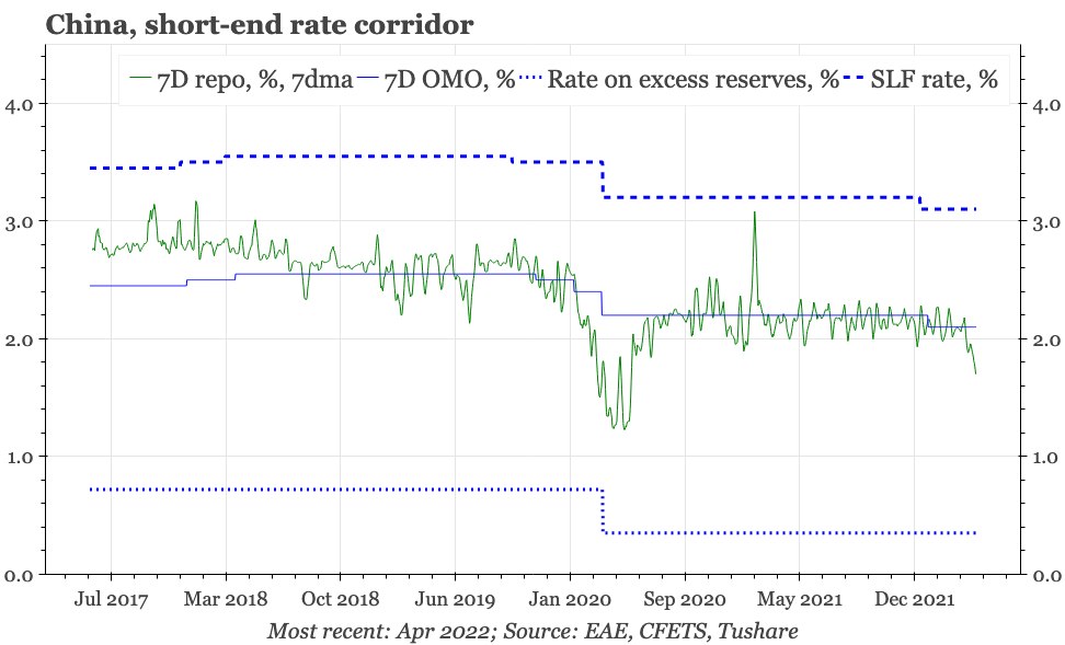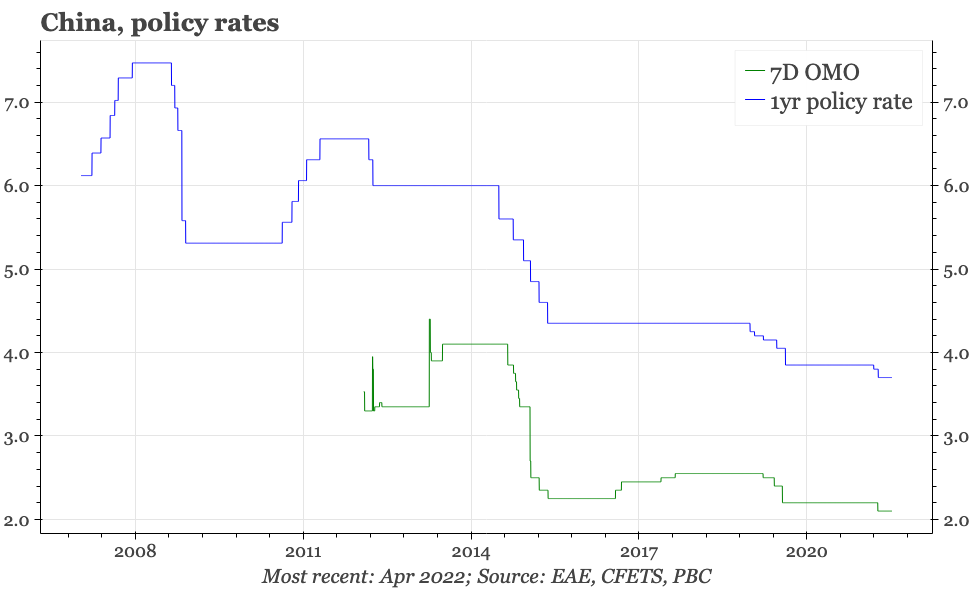 The PBC was unusually communicative last week, issuing no less than three statements discussing the economy. None of them included specific new commitments, with the tone instead being summarised by the concluding remarks of the last statement on Friday that "on the foundations of conscientiously implementing the policies already announced, to further step-up the work intensity, further increase the level of support for the real economy, ensure the stability of the market, the stability of the economy, and create a good environment for the successful convening of the 20th party congress".