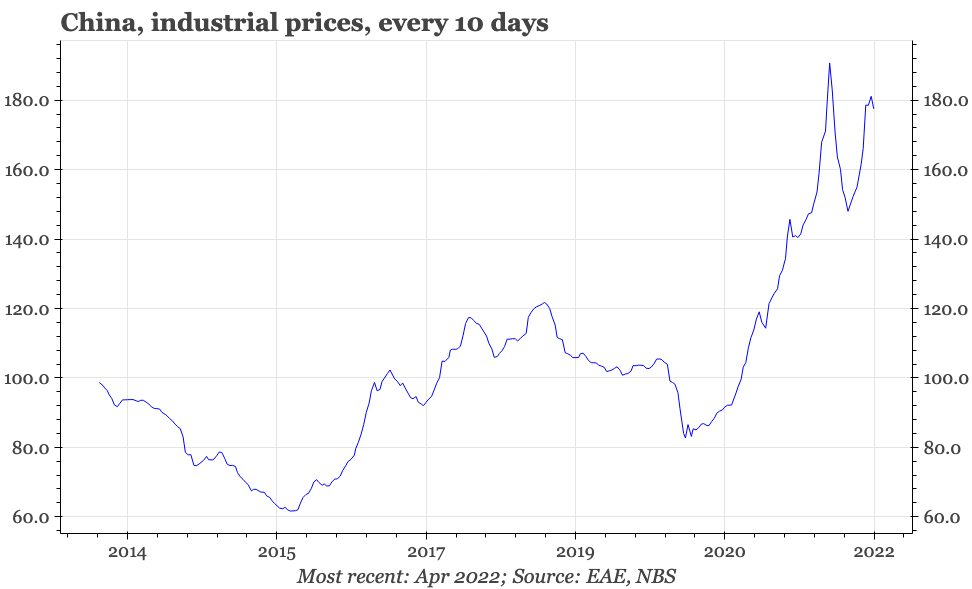 Apart from capital outflows, the other potential constraint on PBC loosening is inflation. Like GDP and activity, price trends in China have looked very different to those in the US: while measured using PPI inflation in China has been strong, on every other metric it has been weak. However, some worries about prices are now starting to appear in policy statements, with the PBC's statement on Friday including a pledge to "prioritise and energetically support agricultural production as well as output and the smooth supply of coal, oil, gas and other important commodities, and ensure the stability of prices".