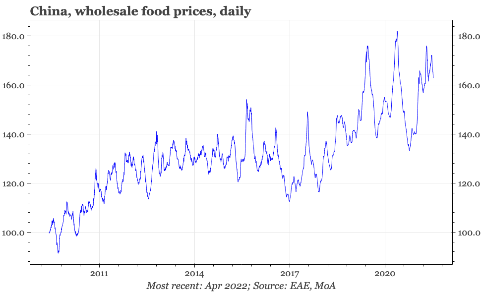 Given that these concerns about prices have only started to appear very recently, they would seem to be driven by the supply disruptions caused by the covid lockdowns more than a worry that China is starting to see the same inflation dynamics as much of the rest of the world is experiencing. This could change, but even with covid it doesn't yet look like inflation is becoming a huge problem. Food prices were unseasonally strong through the first half of April, but at least according to the Ministry of Agriculture, have started to fall again in the last couple of weeks.