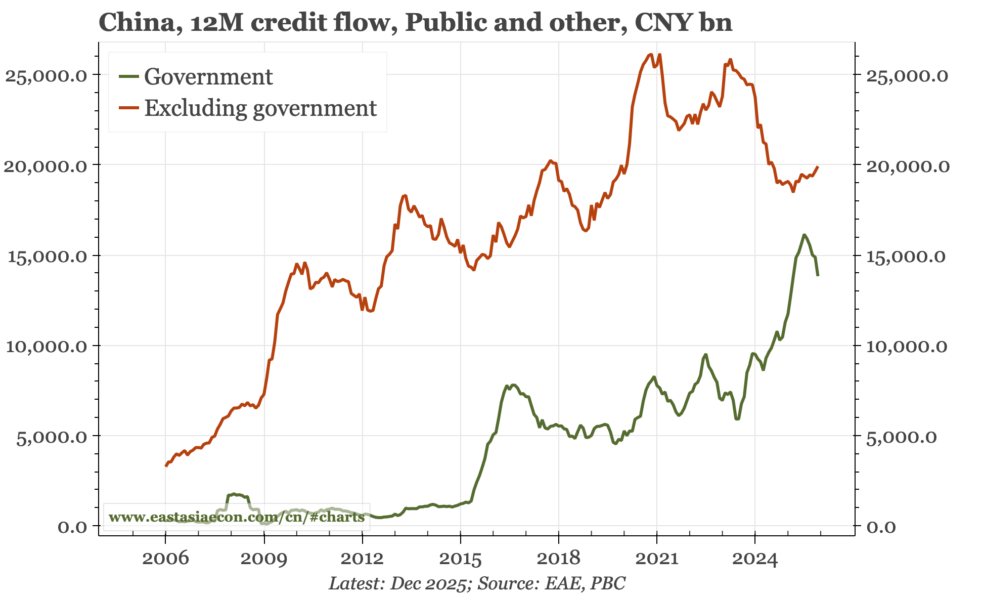 Cycle update – foreign flows stronger than domestic. China's release today of December data for money, credit and fx settlement tell three stories: domestic savings outflows have lost momentum, credit ex-government is looking a bit stronger, and capital inflows are really picking up. If right, the last dynamic is the most important for markets.