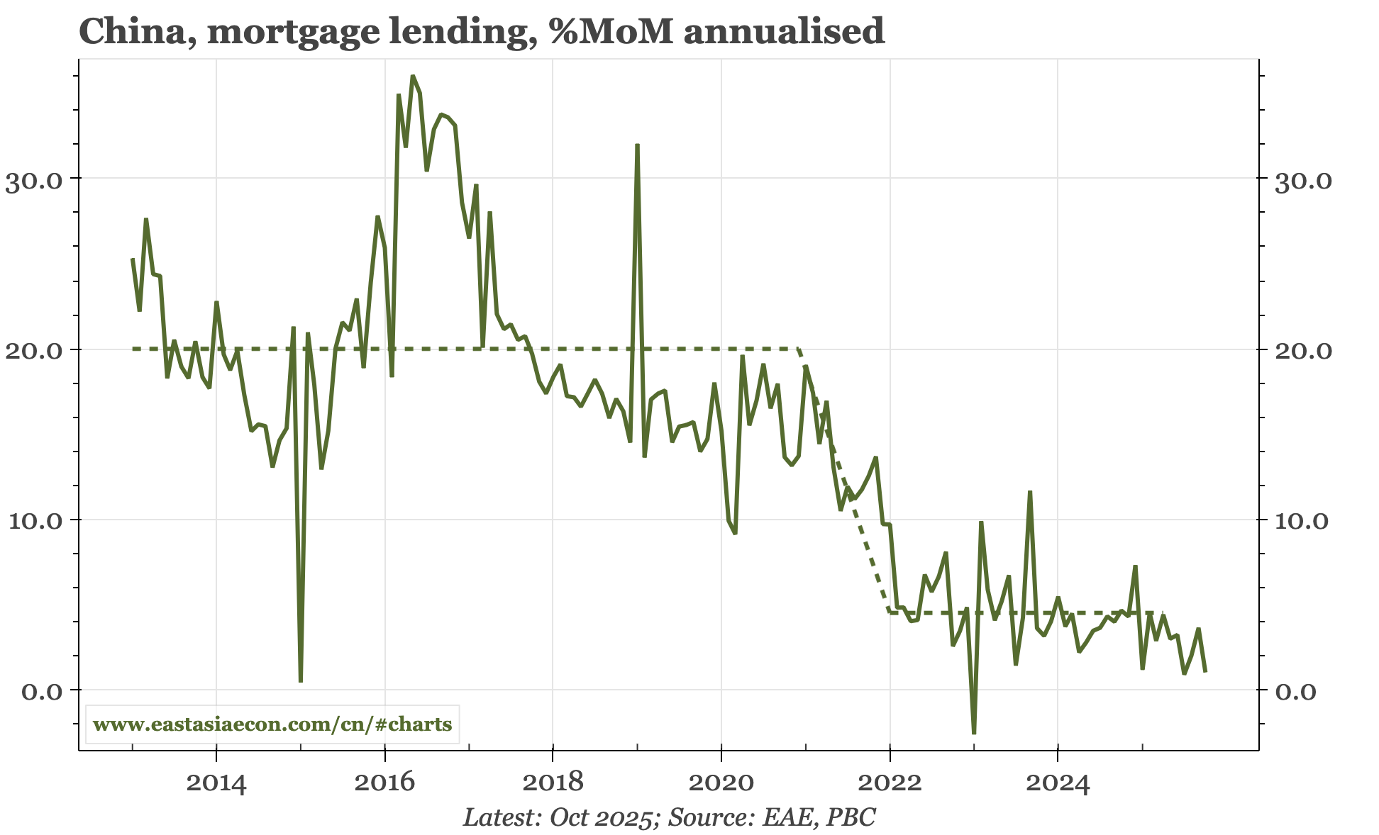 Cycle update – monetary data a bit softer in October. Relative to my idea that the underlying economy could be stabilising, today's monetary data for October are a little soft. In particular, both M1 growth and the M1:M2 ratio ticked down, and mortgage lending also slowed. Credit growth also dropped, but only because of less government borrowing.