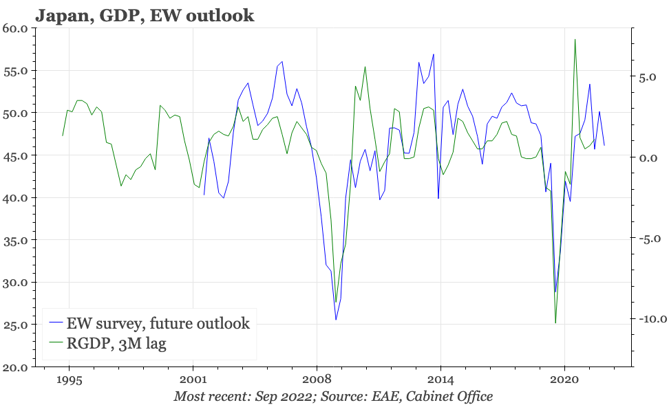 That is an important out turn, given the rise in inflation and associated fall in real incomes. It remains to be seen whether the rebound in household sentiment survives the recent renewed depreciation of the JPY. Corporate sentiment is softer, though not particularly bad, either relative to history, or in the context of weakening corporate sentiment elsewhere in the region.