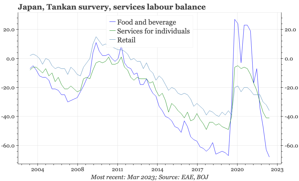 Of course, it is only really now that Asia is opening up after covid. Japan's own border was effectively closed until quite recently, and it is only in the last couple of weeks that the potential for a resumption of international tourist flows in and out of China – which, pre-pandemic, was Japan's biggest source of tourists – has emerged. This quarter's Tankan wouldn't have captured the impact of the changes that will result from Beijing's sharp shift on covid.