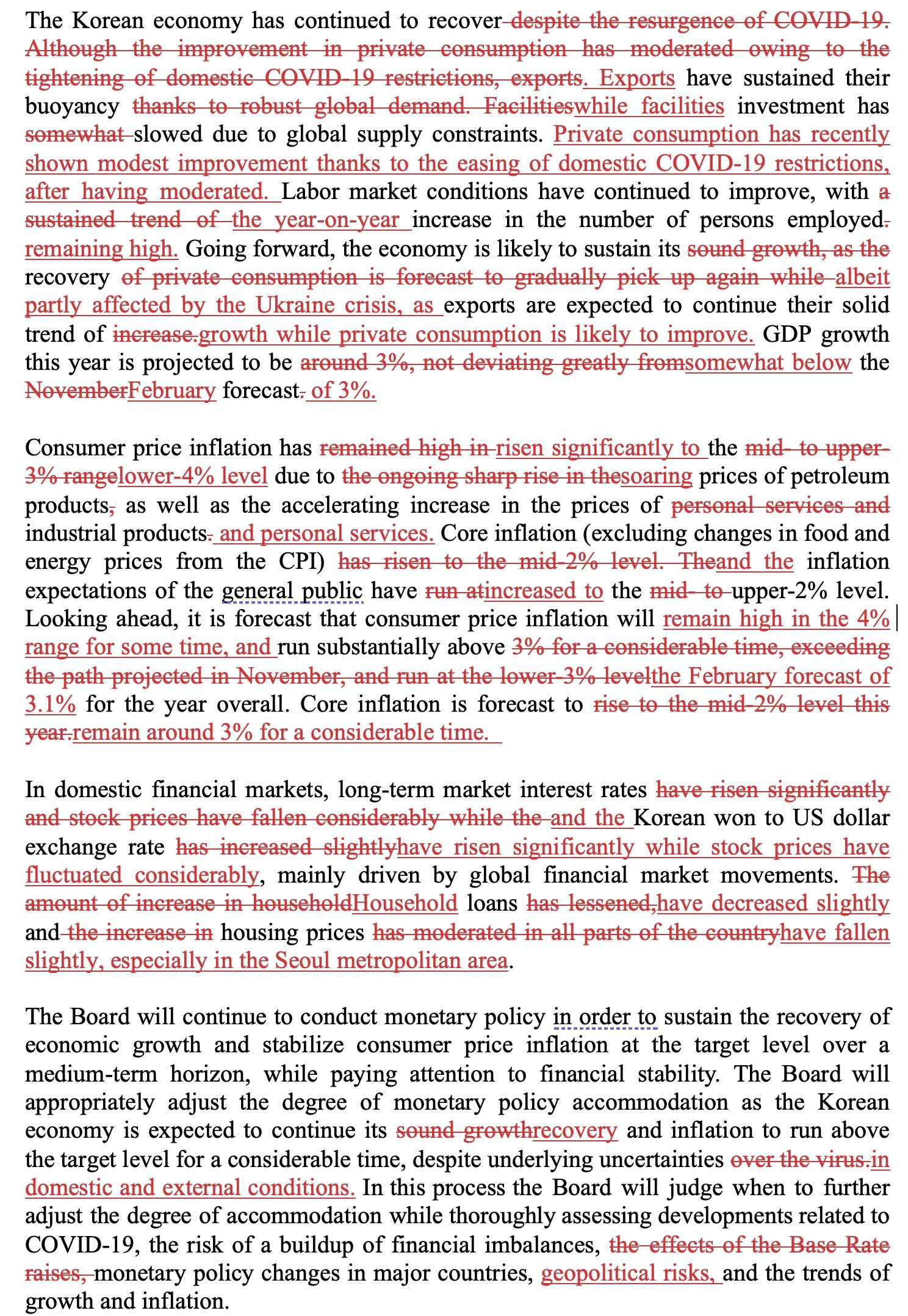 BOK statement - changes in April from February
