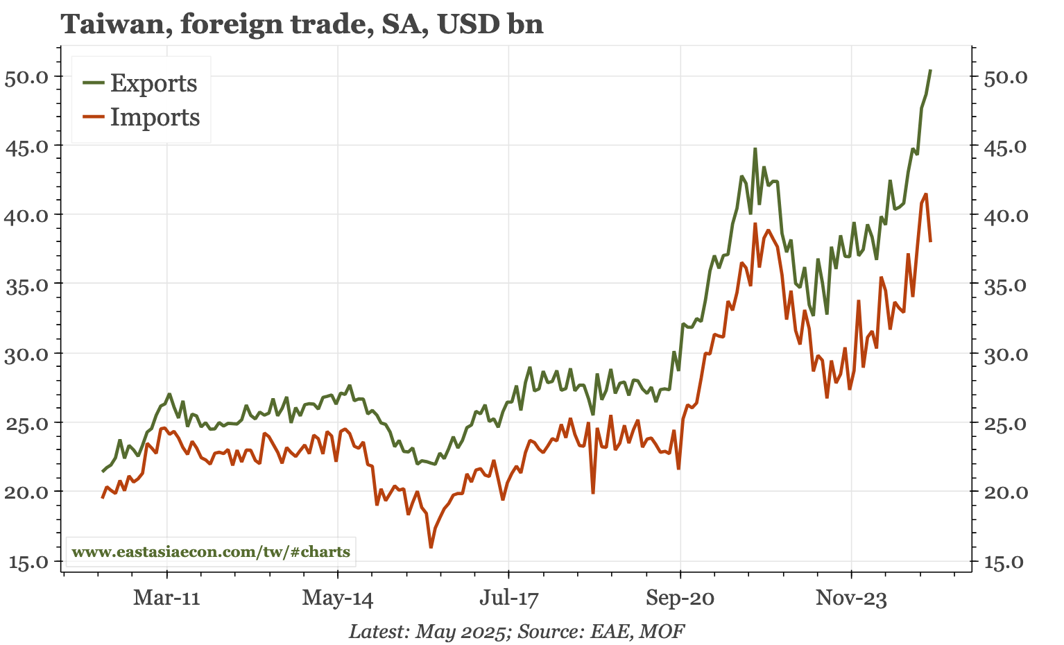 Taiwan – exports still going straight up